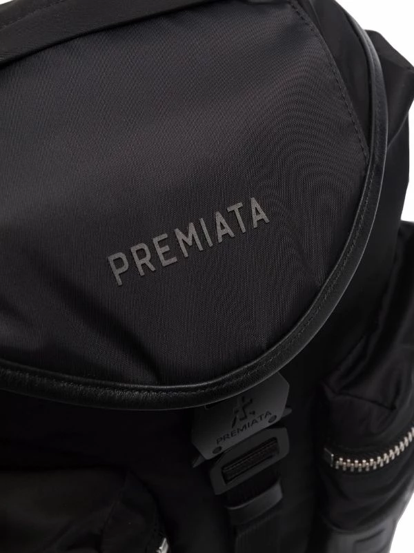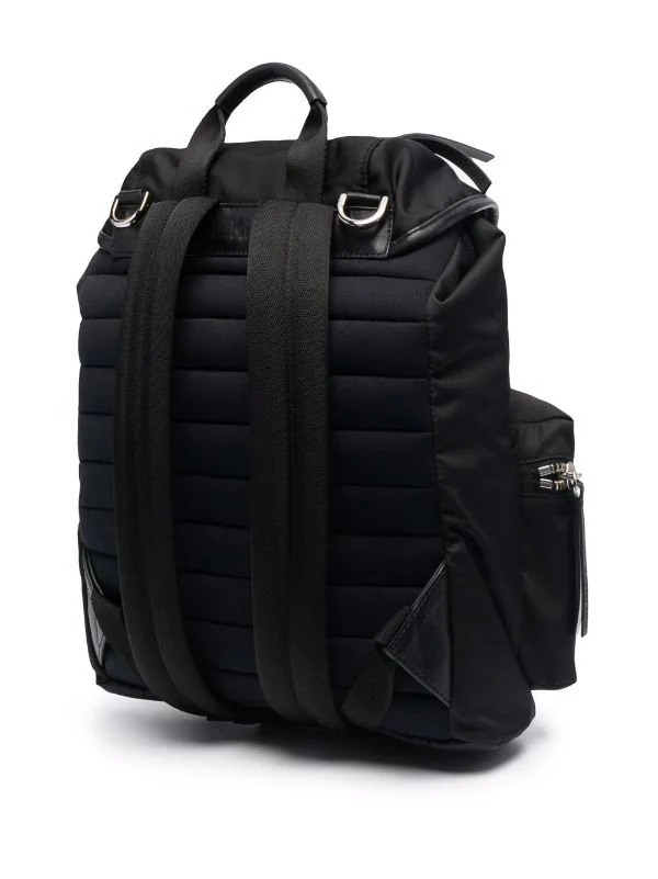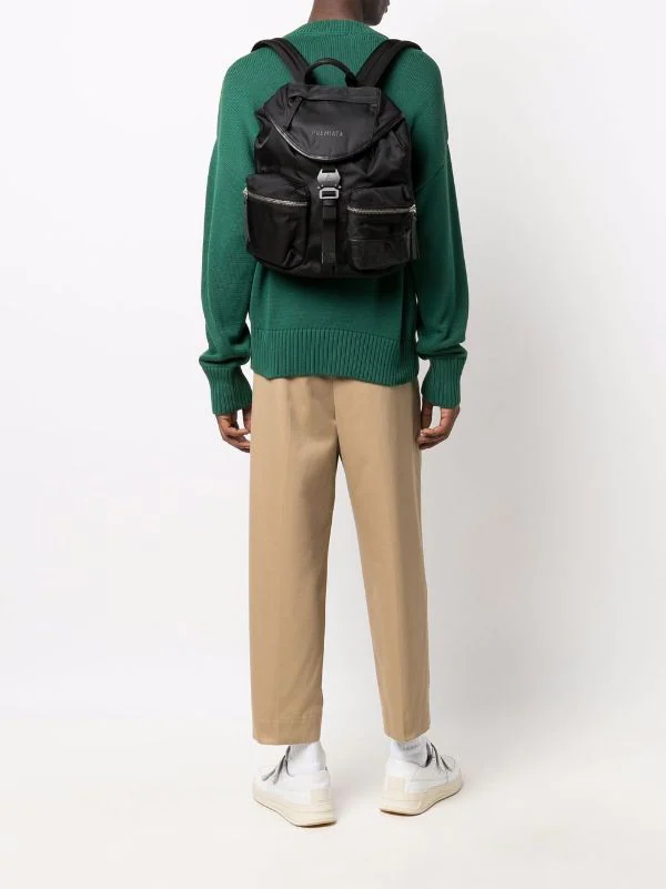 Logo-Print vorne, mehrere Cargo-Taschen, Umschlagklappe, Schnallenverschluss, einzelner Henkel, verstellbare Träger. Farbe: Schwarz.