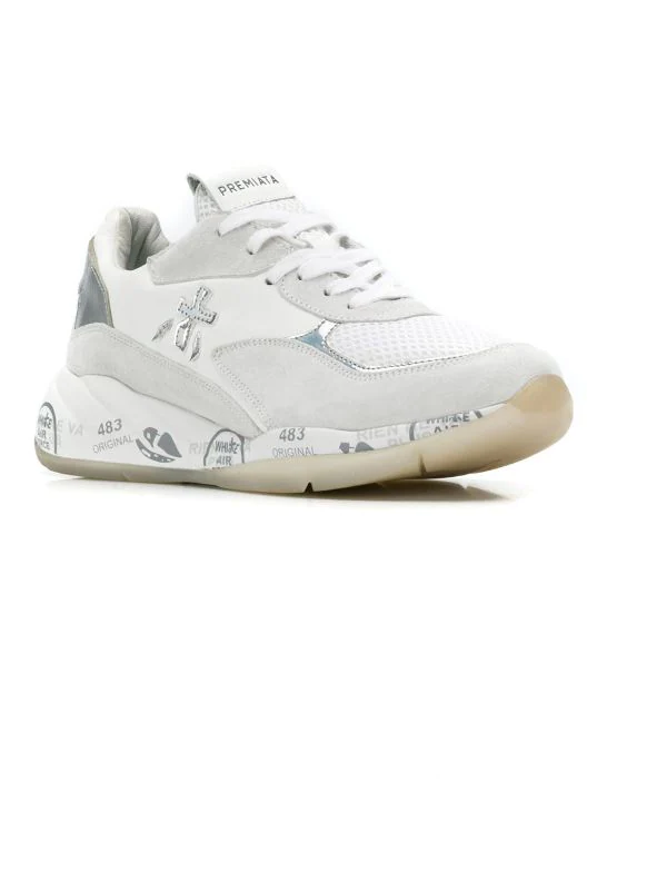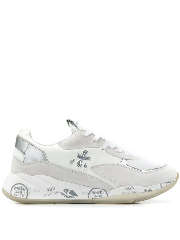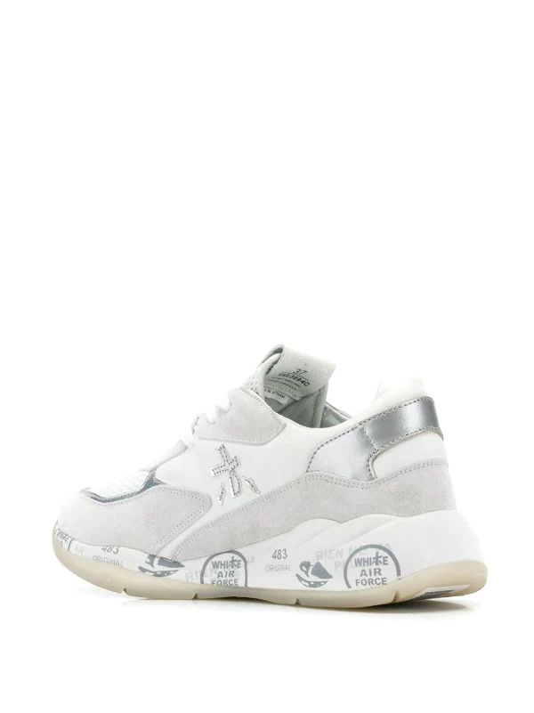 ‚Scarlet‘ Sneakers von Premiata. Merkmale: runde Kappe, flache Sohle, seitlicher Logo-Stempel, Schnürung, Logo-Patch an der Zunge und kontrastierende Einsätze.