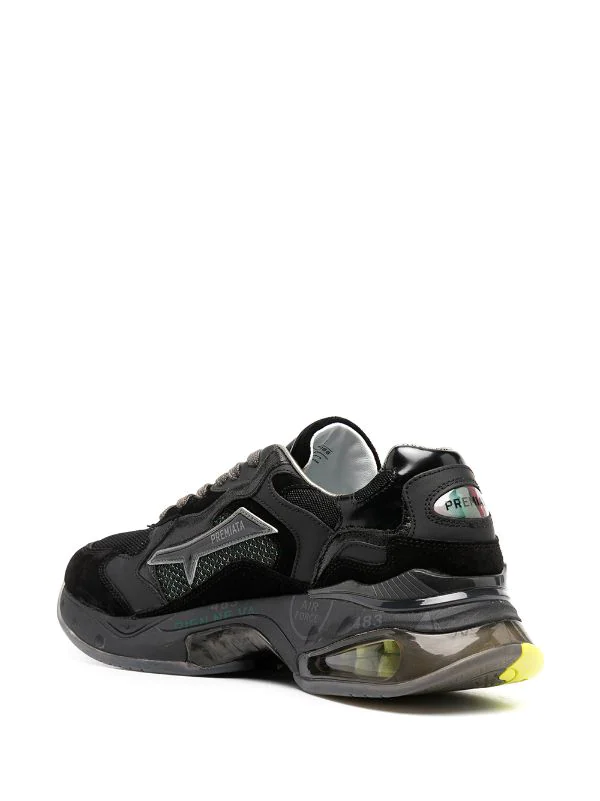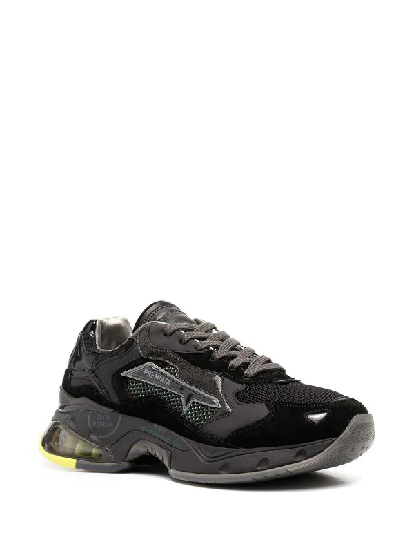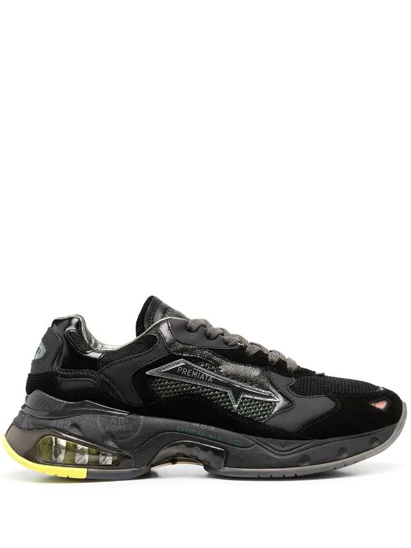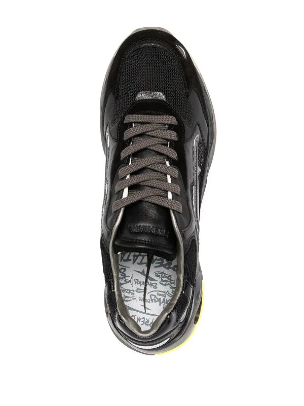 Flache Gummisohle, Schnürung vorne, runde Kappe. Farbe: Schwarz.