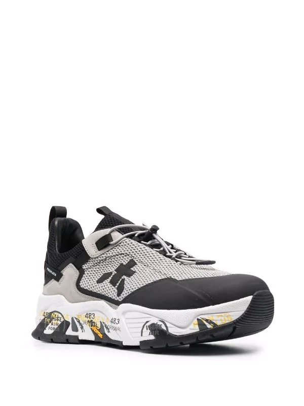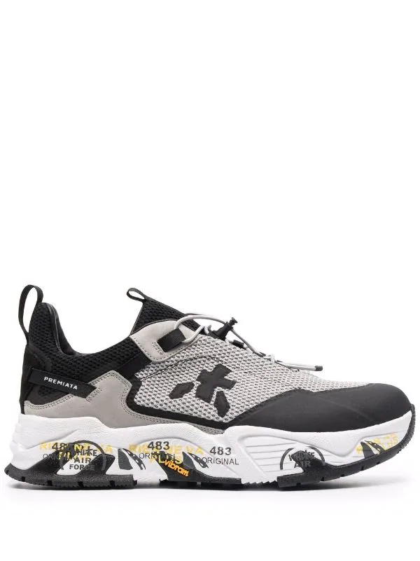 Colour-Block-Design, ikonisches Kreuz-Motiv, Logo-Patch an der Seite, runde Kappe, Schnürung vorne, Lasche an der Ferse, Logo-Prägung im Fußbett, klobige Gummisohle. Material: Leder.