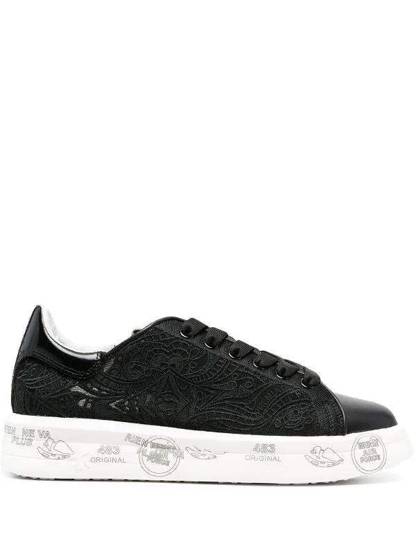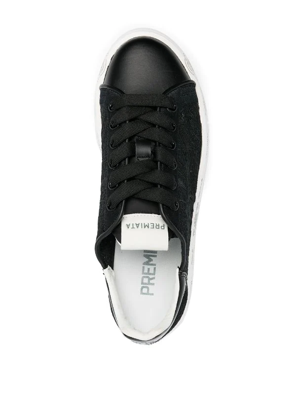 Logo-Patch an der Zunge, runde Kappe, Schnürung vorne, flache Gummisohle. Farbe: Schwarz. Material: Leder.