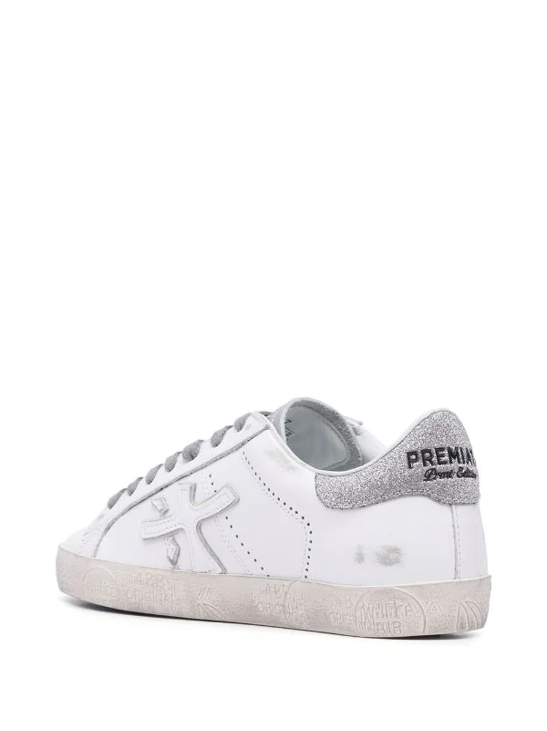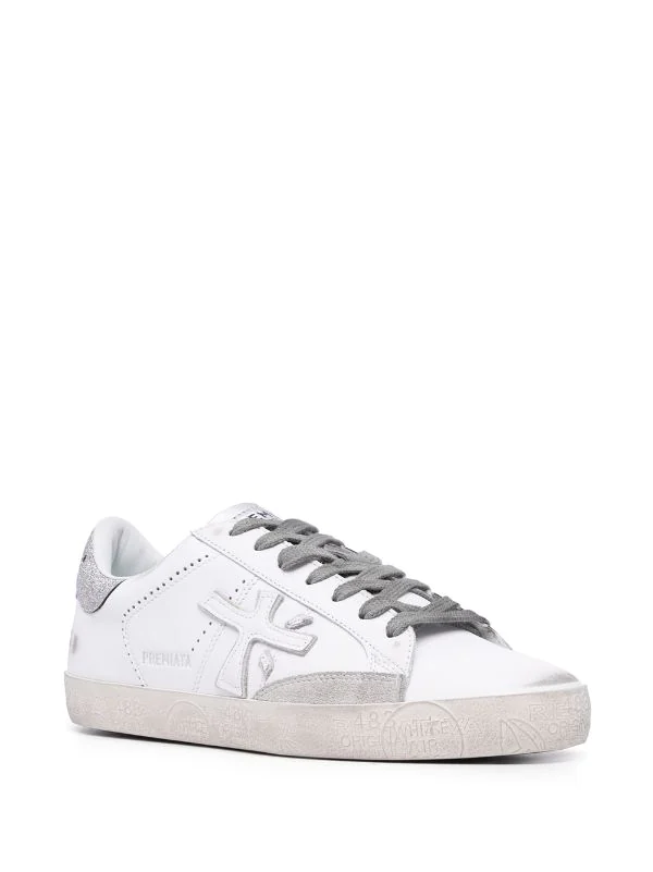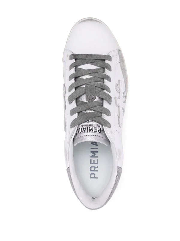 Runde Kappe, Schnürung vorne, flache Gummisohle. Material: Leder.