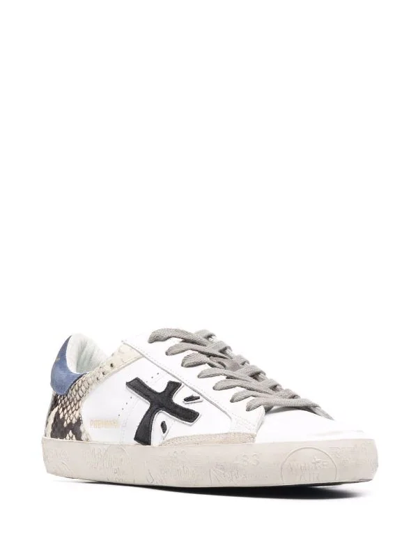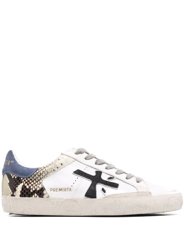 Mehrfarbig, Kalbsleder, Schlangen-Effekt, Logo-Patch an der Seite, Zunge mit Logo-Print, Schnürung vorne, runde Kappe, flache Gummisohle, Logo-Prägung im Fußbett.