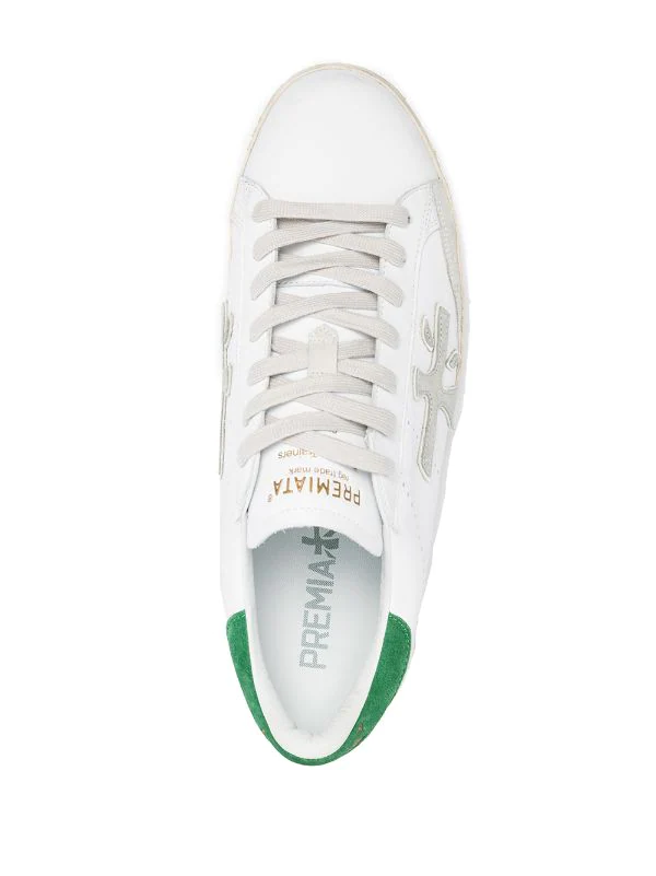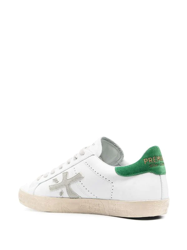 Schnürung vorne, perforiert, goldfarbenes Logo, runde Kappe, Logo-Prägung im Fußbett. Material: Leder.