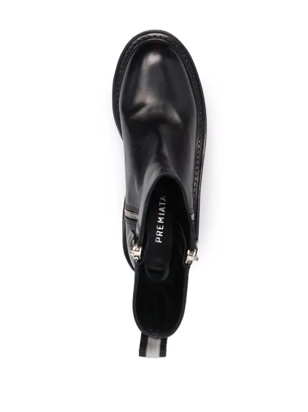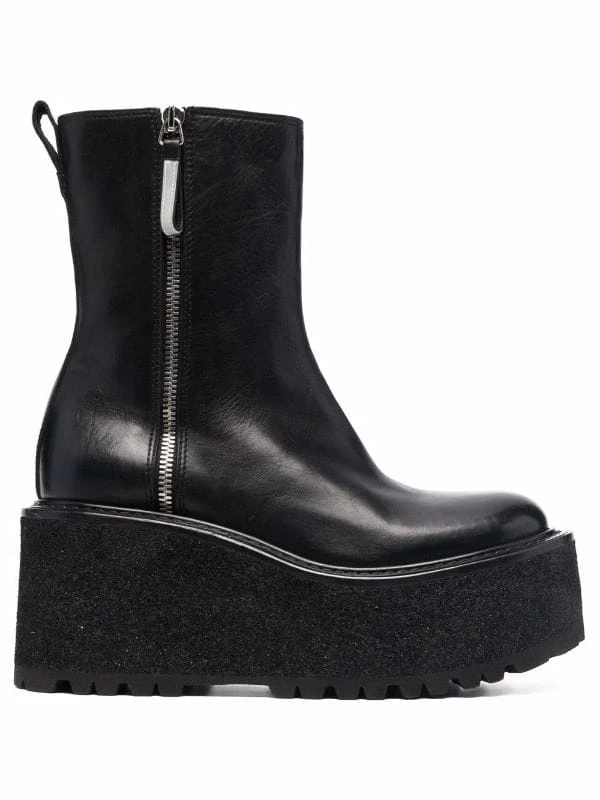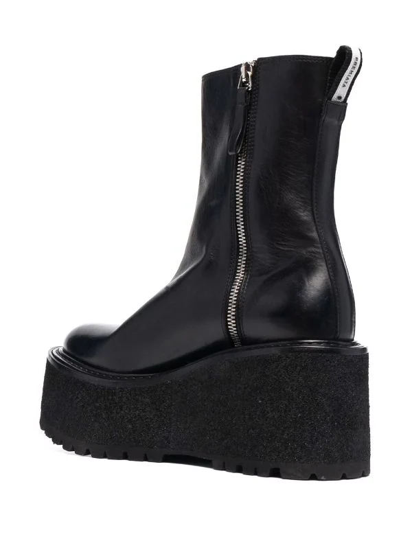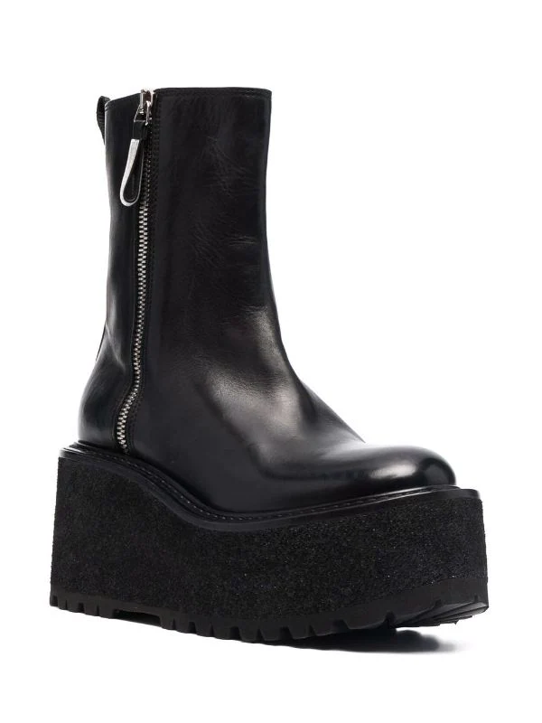 Schwarz, Kalbsleder, seitlicher Reißverschluss, knöchelhoch, Pleateausohle.