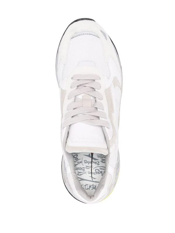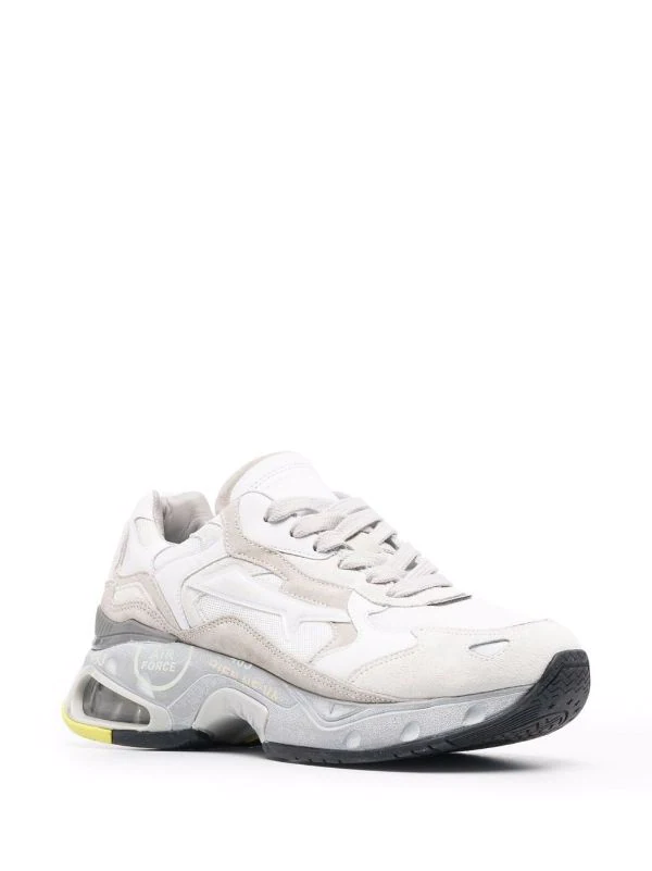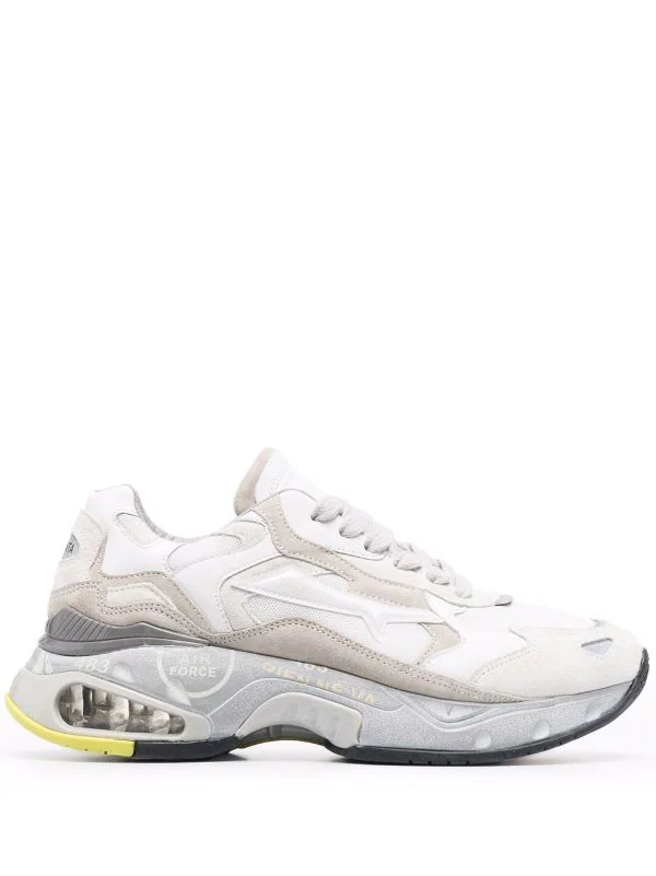 Kontrastdetails, Schnürung vorne, runde Kappe, klobige Gummisohle.