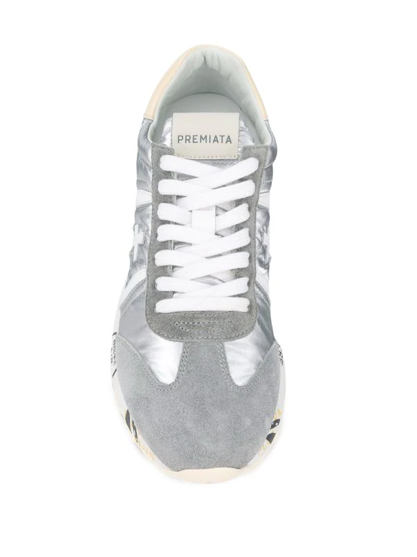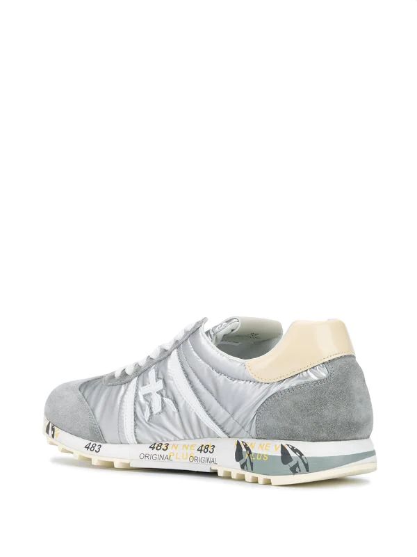 Print-Mix, kontrastfarbiger Einsatz, Logo-Patch an der Zunge, Logo-Patch an der Seite, Schnürung vorne, runde Kappe, geriffelte Gummisohle.