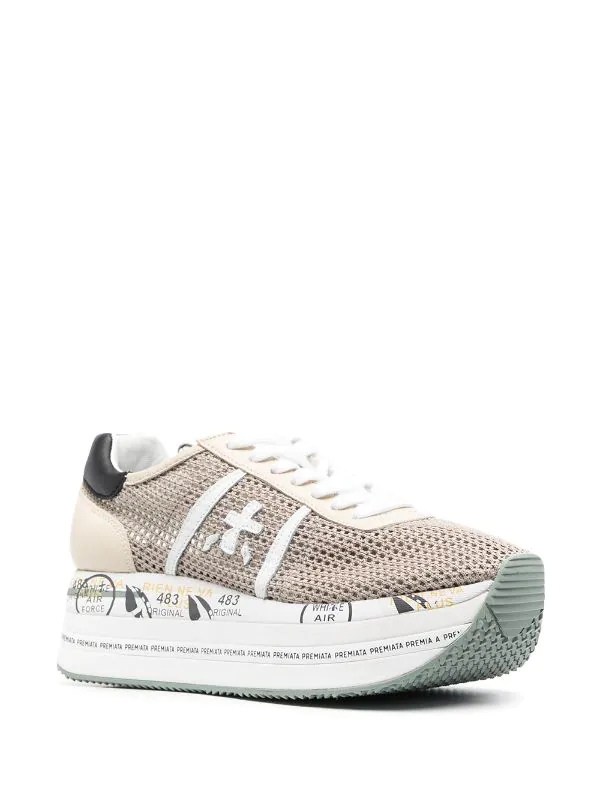 Schnürung vorne, runde Kappe, Zunge mit Logo-Print, Logo-Prägung im Fußbett, Pleateausohle. Material: Leder.