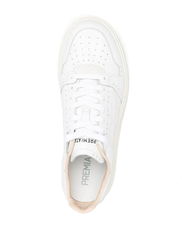 Perforiert, Schnürung vorne, runde Kappe, Logo-Prägung im Fußbett, klobige Gummisohle. Farbe: Weiß. Material: Leder.