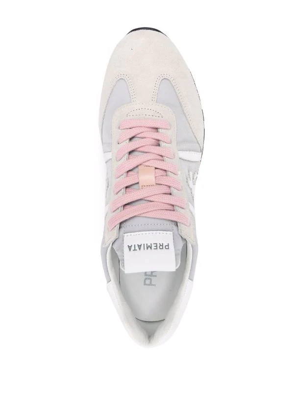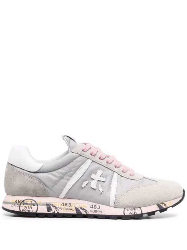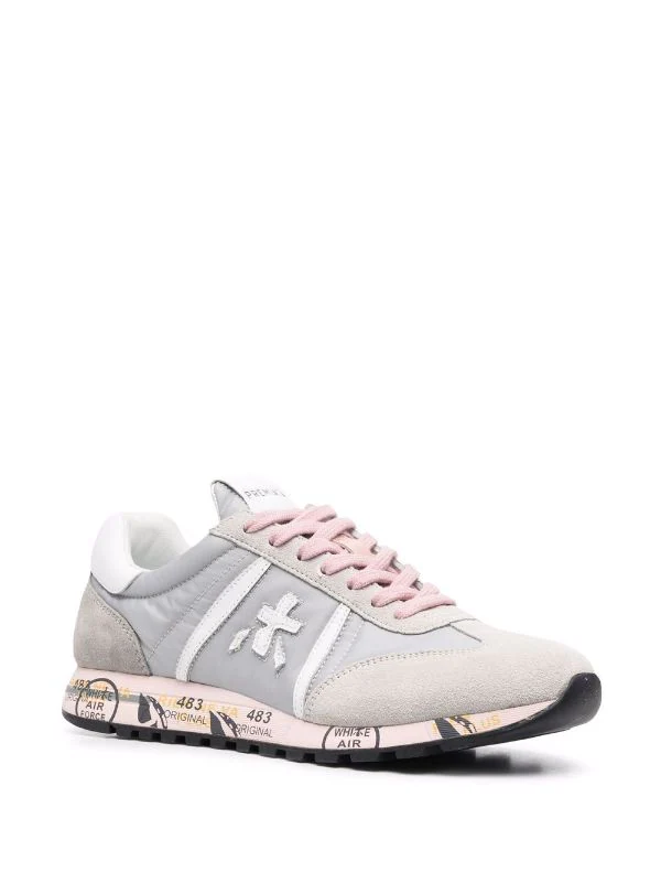Colour-Block-Design, Stempeldetail, ikonisches Kreuz-Motiv, Schnürung vorne, mandelförmige Kappe, Logo-Prägung im Fußbett, klobige Gummisohle. Material: Leder.